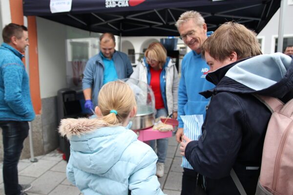 Für gute Laune war gesorgt: Rund 250 Zuckerwatten und 160 Portionen Popcorn wurden kostenlos verteilt. An der Zuckerwattemaschine stand Thomas Borcuch, an der Popcornmaschine Andreas und Tanja Nageler, tatkräftig unterstützt von Klaus Schuhmacher, Roland Kraus, Carmen Müller und Marcel Menacher uvm. Auch Reinhard Mixl (MdB) ließ es sich nicht nehmen, vorbeizuschauen und mit den Bürgern ins Gespräch zu kommen.